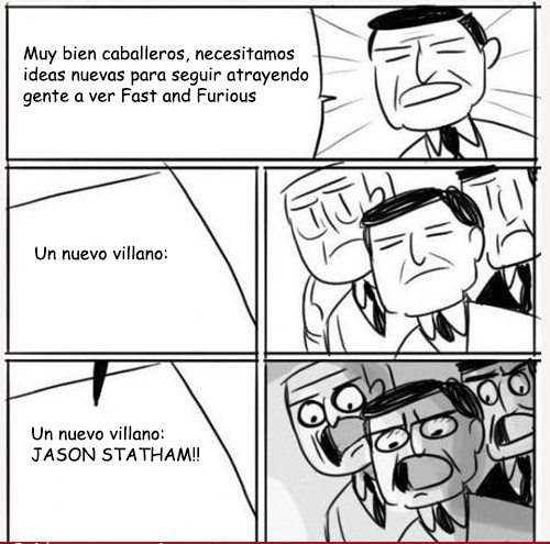 Llega el final feliz, la familia reunida todos amigos y todos agradeciendo a Dios por ser ladrones buenos de autos. Pero al mismo tiempo, al otro lado del mundo aparece un ser que es garantía de que todo se ha ido al carajo, un hombre que con solo mencionarlo sabes que la película es una garantía de que es maaaaalísima: Jason Statham hace su aparición como vil villano, mata a uno de los amigos del Toretto y le lanza una ominosa advertencia: ¡Habrá Fast and Furious 7!