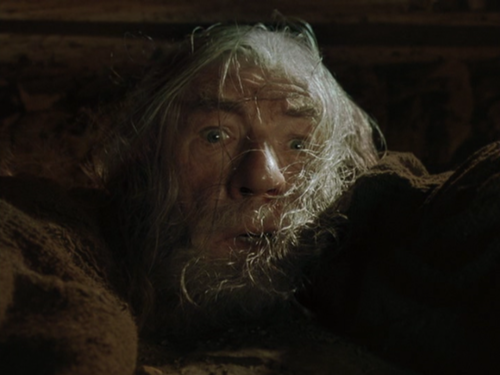 Al más puro estilo del héroe trágico, el mago gris sabe que mas allá de la amenaza de los orcos existe el Balrog, un ser mitológico al que realmente Gandalf teme. Es parte de su destino y su misión en la comunidad. El director con una edición sorprendente, nos lleva al enfrentamiento directo entre el mago y el demonio. Con tomas multiangulares, Jackson muestra el enfrentamiento breve pero altamente dramático, después de una muestra y medición de poderes Gandalf sufre pero vence al Balrog, con un alto costo. La escena de la muerte es maravillosa y las palabras ya son una de las importantes en la memoria colectiva: “Run, You Fools…”
