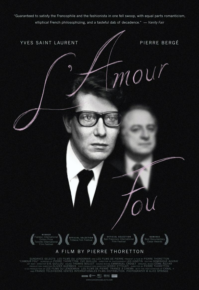 19 y 20 de septiembre Un loco amor (2010), de Pierre Thoretton; una especie de documental, sobre la subasta del siglo de la colección de Yves Saint Laurent quien dejo una gran herencia al mundo de la moda. Su compañero de vida y de negocios decide subastar todo lo cual ocasiona reacciones variadas entre los familiares y seguidores de Yves.